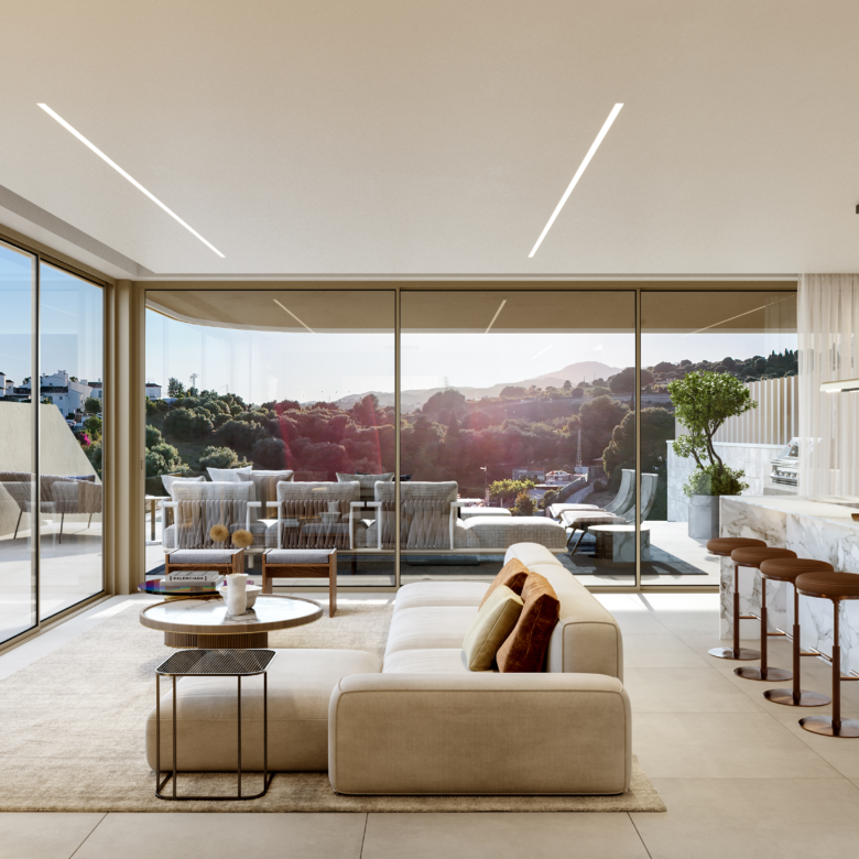 Każda nieruchomość oferuje przestronne tarasy zaprojektowane jako kluczowy element codziennego życia. To miejsca stworzone do odpoczynku, spotkań i korzystania z klimatu Costa del Sol, z widokiem na morze i otaczającą zieleń.